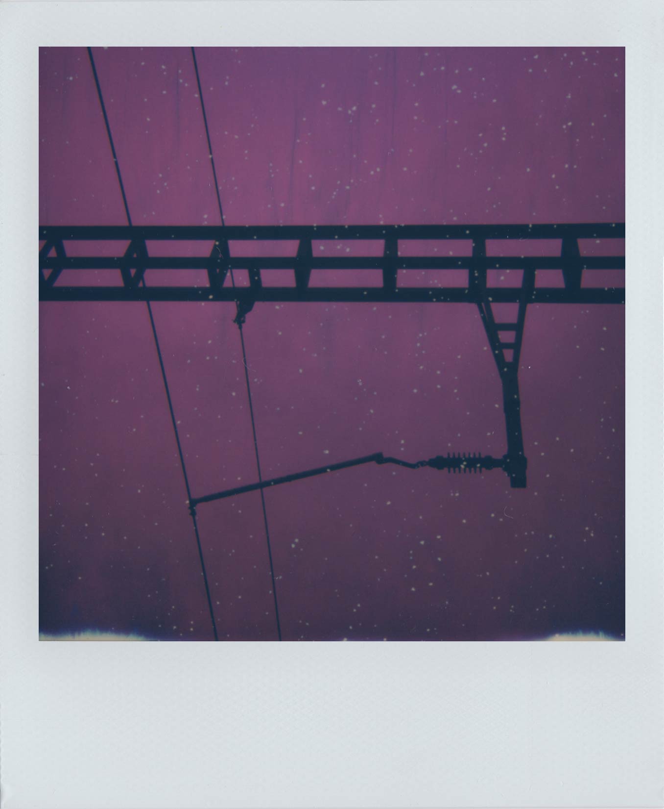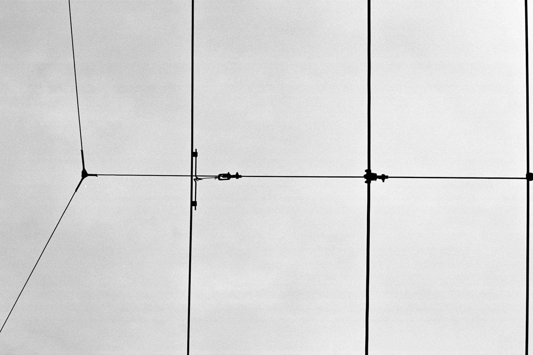 Copper and aluminium cables spread above bystanders, advancing their steps and leading the movement of trains following an established path. A continuous source of energy, unstoppable, held back by the cold strike of clock hands scanning the hours of frenetic lives. They are steps that won’t dare slowing down, shoes strangled by the laces they’re wrapped in, kissing the corvine asphalt and observing the cloudy giant resting on top of houses’ chimneys, wondering what color it is. A metal noose fatal to man that untangles becoming equilibrium. The boundaries of the skies are pierced by the flow of energy coursing through the wires’ heart. Lines suspended in the air in perfect harmony. Fatal geometry.